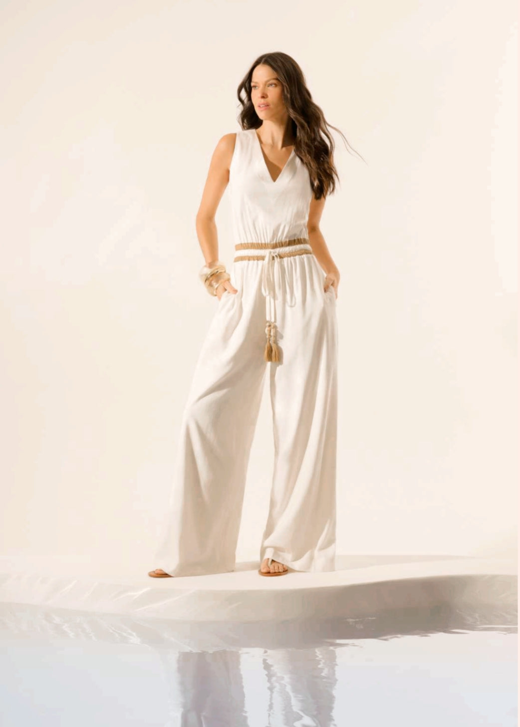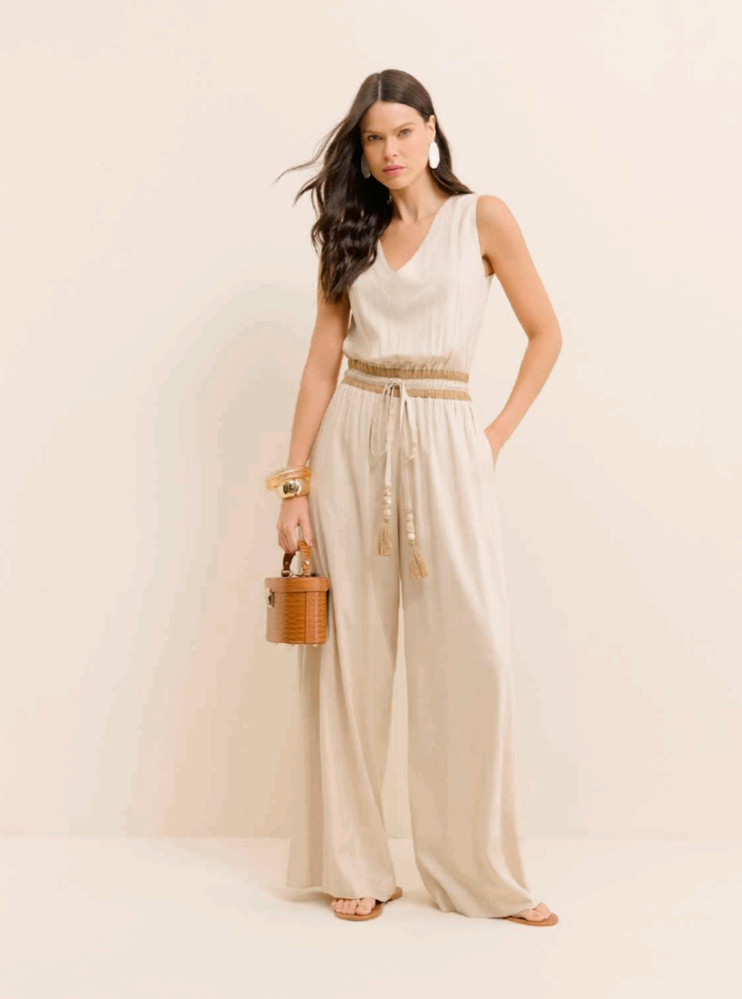 Um macacão que prova que elegância e praticidade podem andar juntas. Modelagem precisa, tecido nobre e um visual que transita com sofisticação do dia à noite.